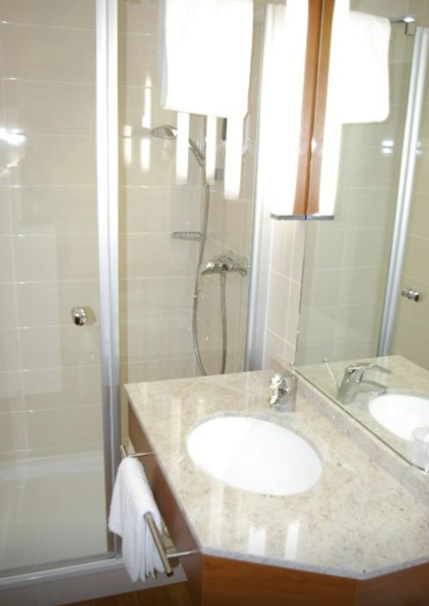 This single room faces the courtyard and features a flat-screen satellite TV and a private bathroom with a shower and hairdryer.