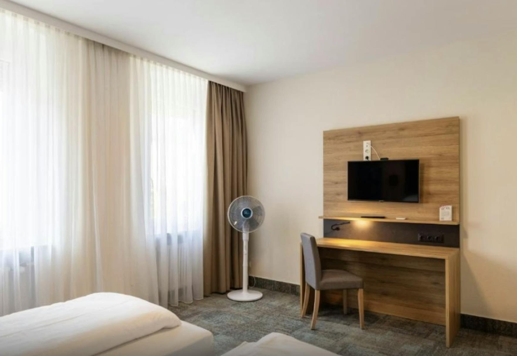 This double room faces the courtyard and features a flat-screen satellite TV and a private bathroom with a shower and hairdryer.